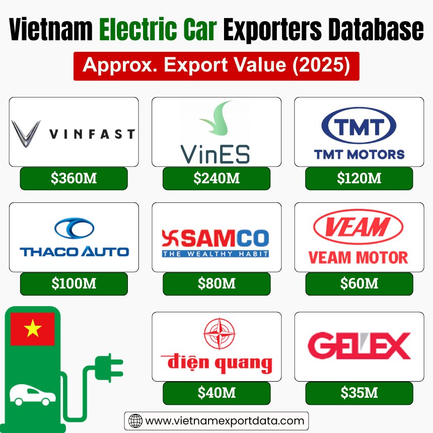 Explore Vietnam electric vehicle export data for 2025, including a comprehensive database of EV manufacturers, export trends, key markets, and in-depth insights into Vietnam’s growing electric car industry.