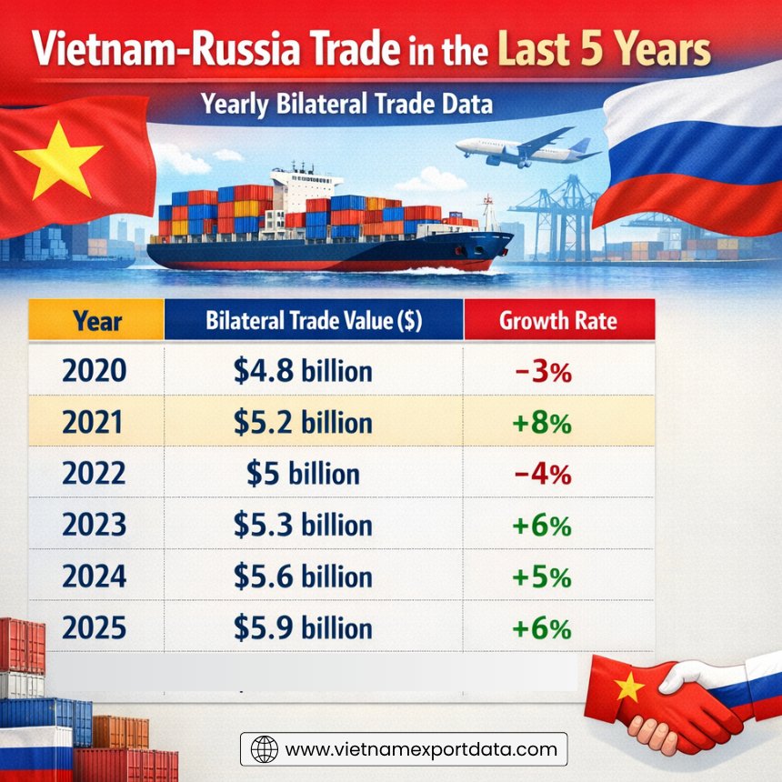Vietnam-Russia Trade Turnover Increased by 6% in 2025: Bilateral Trade Growth Analysis