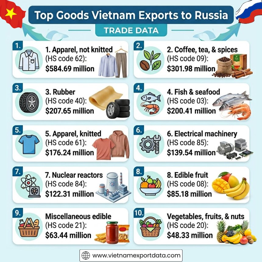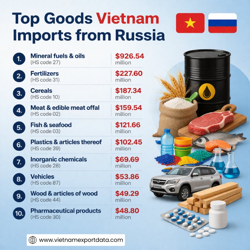 Export Trend Insight: Vietnam benefits from competitive manufacturing costs and an established export infrastructure, making it a reliable supplier for Russian markets.